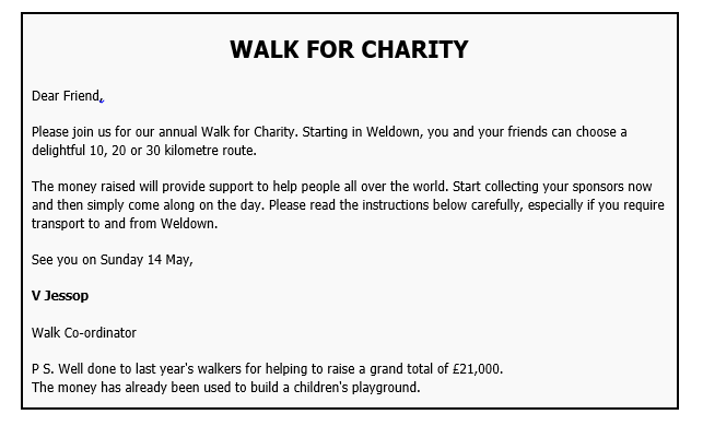 Look at the information on the given page about a walk for charity.