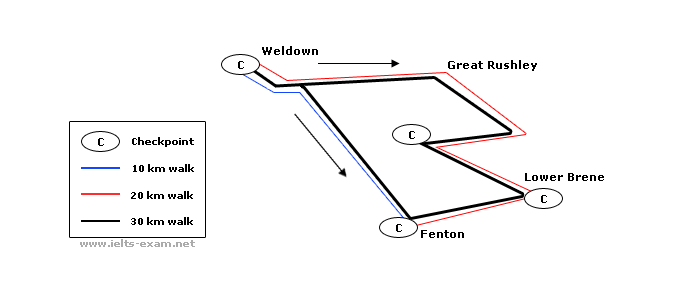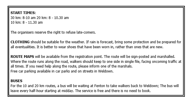 1. What is the starting point for the 30 km walk?