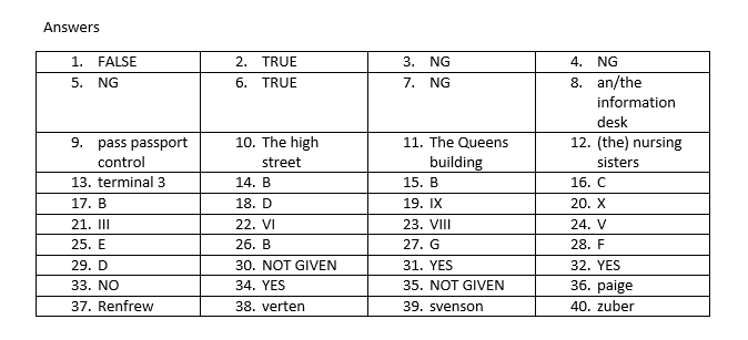 Write your answers in boxes 36-40 on your answer sheet. The first answer has been done for you in bold letters.