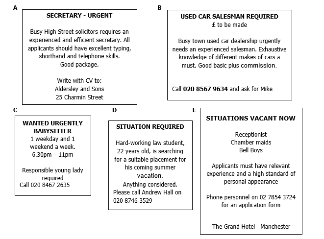 1. Which advertisement is NOT offering a job?