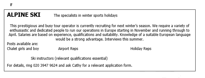 3. Which advertisement offers the chance of a job abroad?