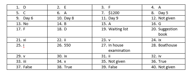 In boxes 35 – 40 on your answer sheet write: