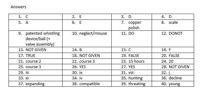 Read the Product Information Leaflet for the Marchmain Copper kettle again. Look at the statements below (questions 11 – 13)