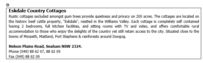 The best way to see Morpeth is to take the Morpeth Heritage Walk. This covers about three kilometres, and takes visitors past many beautiful historical buildings. Starting at Fig Tree Hill, which has picnic facilities, stroll past the Surgeon’s Cottage, built in 1845, formerly home of the local doctor, now shops. From there you will come to Morpeth Bridge, erected in 1870, which replaced a ferry boat. Opposite it on the right is the Courthouse, still in use today. Continue your walk past the historic Railway Station, then turn into George Street. Stroll past gracious houses until you come to the Church of the Immaculate Conception on your right, built of bricks made in Gosford. Continuing up George Street, you come to the shopping district; browse through the shops or stop for refreshment. Your tour of Morpeth will finish at magnificent Closebourne House, built in 1826 by Lieutenant Edward Close.