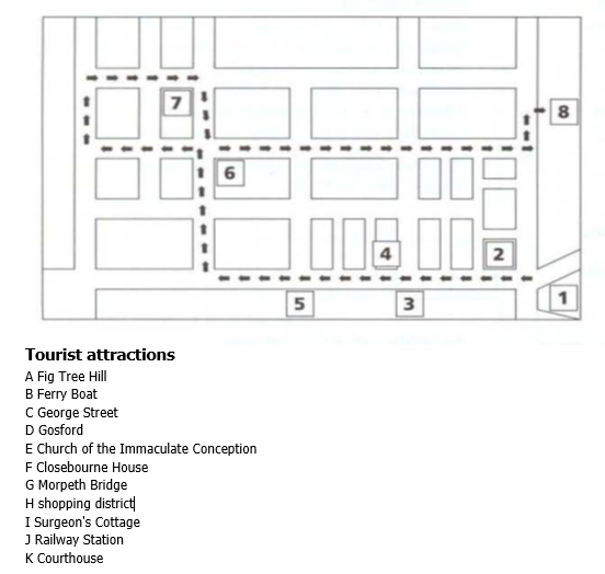 Using information from the text, fill in the names of the /lumbered tourist attractions on the map. Write your answers in boxes 8-14 on your answer sheet. The first one has been done for you as an example. Note: there are more names than you will need.