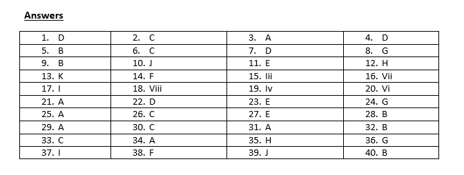 Complete each sentence with the correct ending from the box. Write the correct letter, A-K, on lines 34-40 on your answer sheet.