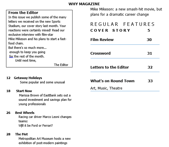 Answer questions 1-3 by writing the appropriate page number or numbers where the information appears in the magazine, in boxes 1-3 on your answer sheet.