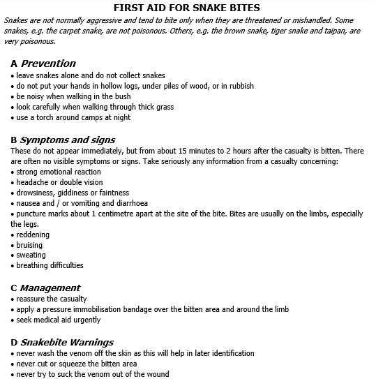 12. wear stout shoes, walk-socks and jeans (or similar clothing) in areas where snakes could be present