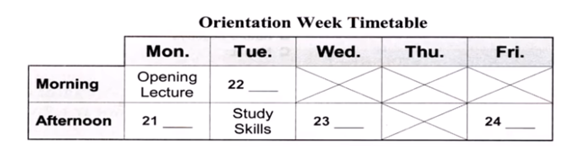 Complete the timetable. Write the correct letter A-H for each answer.