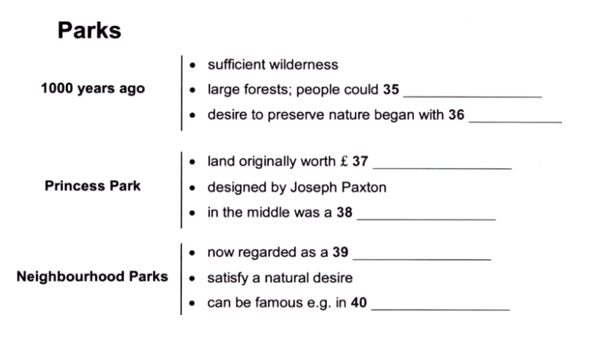Complete the notes. Write NO MORE THAN TWO WORDS AND/ OR A NUMBER for each answer.