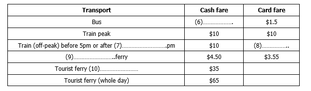 Complete the table below. Write no more than one word and/or a number for each answer.