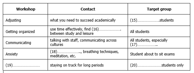 Which counsellor should you see? Write the correct letter, A, B or C, next to questions 11–14.