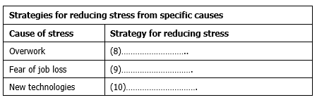 Complete the list of reasons why these people suffer from stress. Choose from the list of possible causes below.