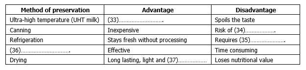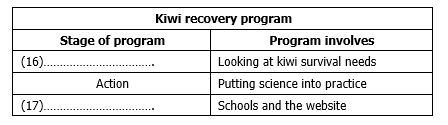Complete the table below. Write NO MORE THAN THREE WORDS for each answer.