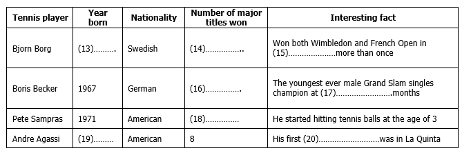Complete the table below. Write NO MORE THAN THREE WORDS AND/ OR A NUMBER for each answer.