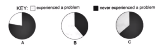 35. Which pie chart shows the percentage of respondents who experienced a problem in the supermarket?