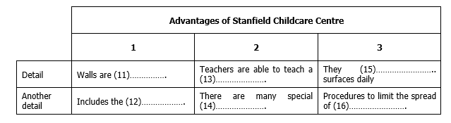 Complete the table below. Write NO MORE THAN TWO WORDS for each answer.