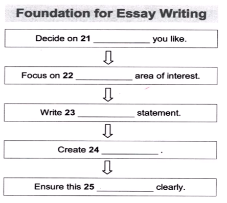 There are several (26) involved in producing a good essay. The writer must think independently, and give (27) examples as support, each one with a reference (which is academically (28) ). The formatting must follow the (29) issued by the university, as well as the word count decided by the lecturer, although it can vary by (30)