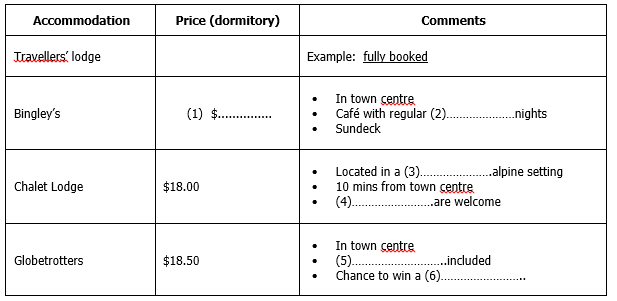 Complete the table below. Write NO MORE THAN THREE WORDS OR A NUMBER for each answer.