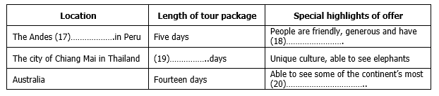 Complete the table below. Write NO MORE THAN TWO WORDS AND/ OR A NUMBER for each answer.