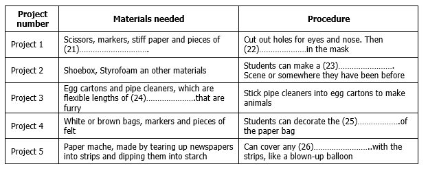 Complete the table below. Write NO MORE THAN TWO WORDS for each answer.