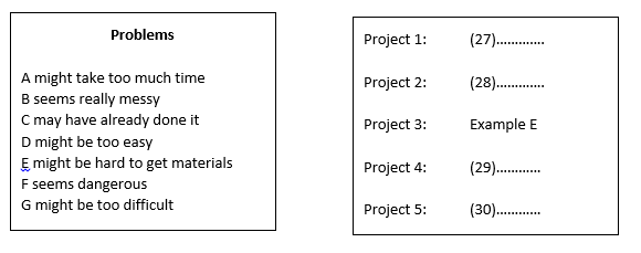 Choose your answers from the box and write the letters A-G next to questions 27-30.