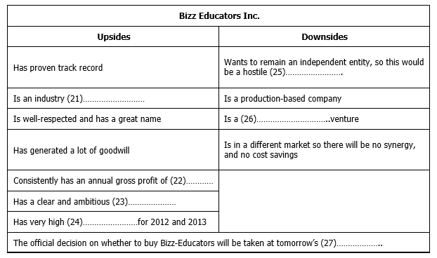 A Assurances that the management of Bizz Educators won’t oppose the deal