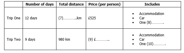 Complete the table below. Write ONE WORD OR A NUMBER.