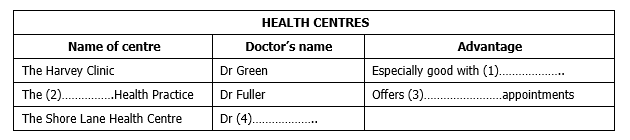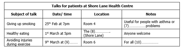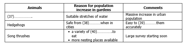 Complete the table below. Write NO MORE THAN TWO WORDS OR A NUMBER.