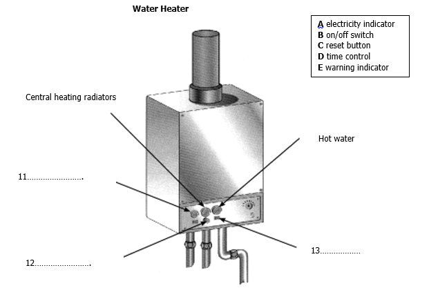 Label the diagram below. Choose THREE answers from the box and write the correct letters A-E.
