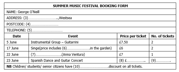 Complete the form below. Write NO MORE THAN TWO WORDS OR A NUMBER.