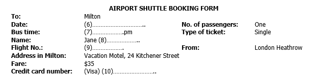 Complete the booking form below. Write ONE WORD OR A NUMBER.