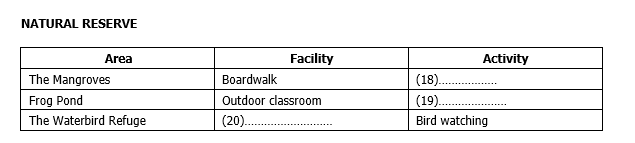 Complete the table below. Write NO MORE THAN TWO WORDS.