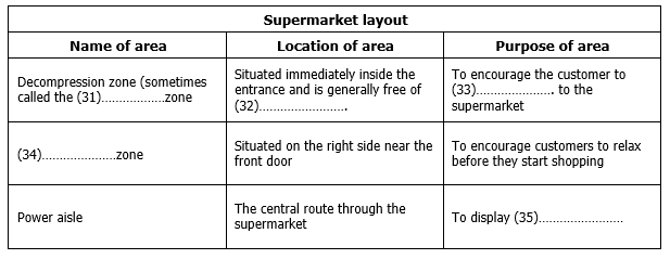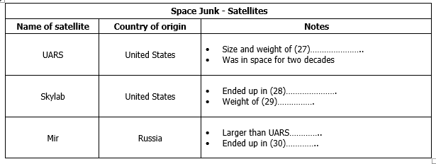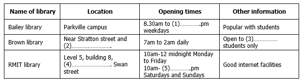 Complete the table below using NO MORE THAN TWO WORDS AND/OR A NUMBER for each answer.