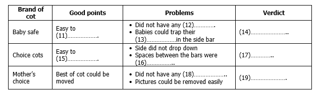 Complete the table below. Write NO MORE THAN THREE WORDS.