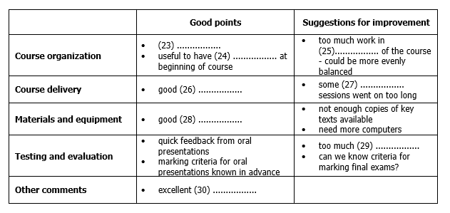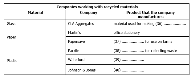 Choose the table below. Write NO MORE THAN ONE WORD for each answer.
