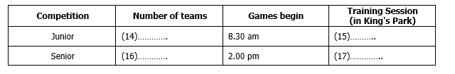 11. The next meeting of the soccer club will be in the in King’s Park on 2 July.