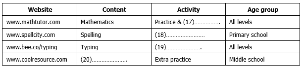 Complete the table below. Write NO MORE THAN TWO WORDS AND OR A NUMBER for each answer.
