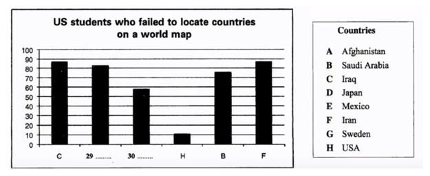 Label the diagram below. Choose your answers from the box and write the letters A-H next to questions 29-30.