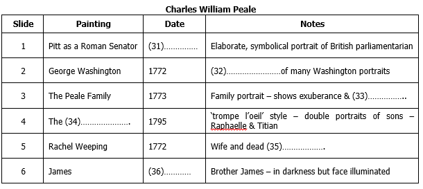 Primarily, Peale was a painter but he was also a politician, scientist and (37) with many successful patents. He worked with Thomas Jefferson on the polygraph which was a desk that could be used for copying a (38) He wrote academic papers on different subjects and tried to make movies, spectacles and a velocipede (a kind of (39) ) Peale was also a naturalist and taxidermist and he helped unearth the skeleton of mastodon which was the best (40) in his museum.