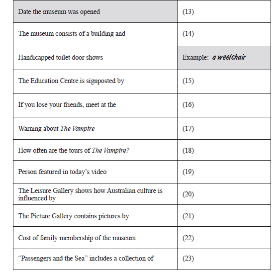 Complete the table Write NO MORE THAN THREE WORDS for each answer.