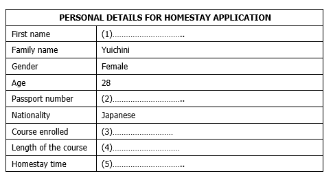 Complete the following form with NO MORE THAN THREE WORDS AND/OR A NUMBER for each answer.