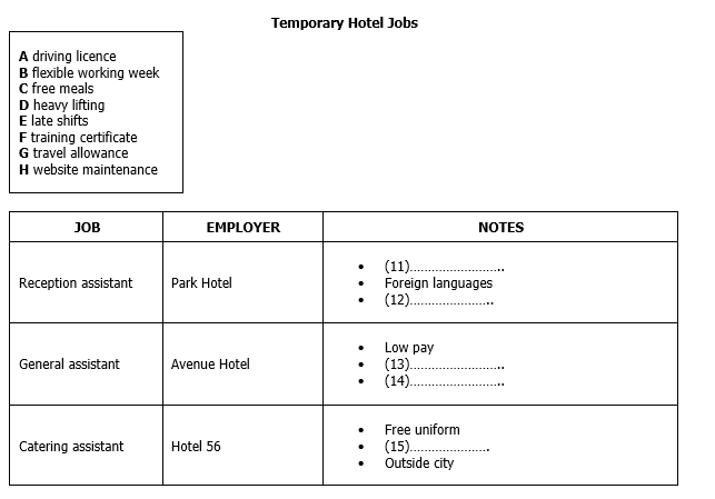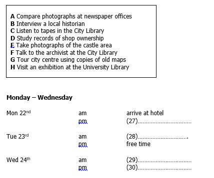 Complete the timetable below. Choose your answers for the box.