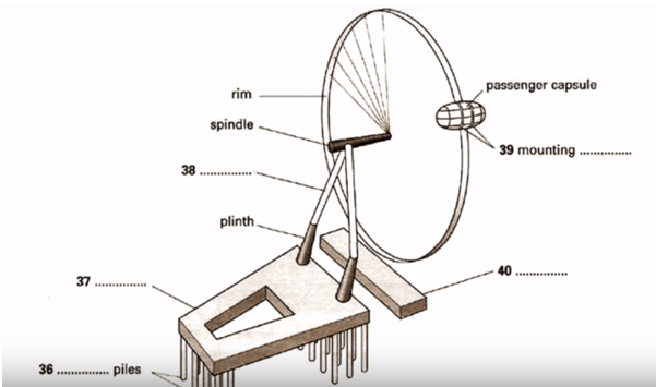 The architects who designed the London Eye originally drew it for a (31) in 1993. Subsequently, they formed a partnership with (32) to develop the project. As the biggest observation wheel ever built its construction involved 1700 people in five countries. Most of its components had to be (33) and delivering them had to be coordinated with the (34) in the River Thames. On average 350 hours a week are spent on maintenance of the Eye and only (35) is used to clean the glass.