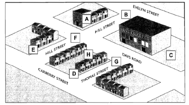 Label the map below. Write the correct letter A-H next to questions 14-20.