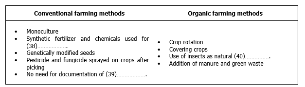 If soil is healthy, it is a (31) teeming with life such as worms, fungi and bacteria. If plants are grown in poor soil, they will lack (32) and human health will suffer. Plants are nourished by organic matter, (33) and other essential elements which are broken down by insects and other organisms in a synergistic relationship.