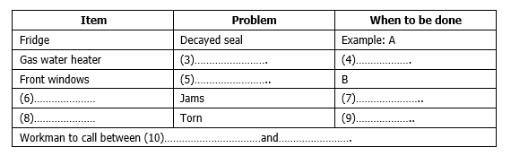 Complete the table below. Write NO MORE THAN THREE WORDS AND/ OR A NUMBER for each answer.