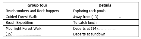 Complete the table below. Write NO MORE THAN THREE WORDS for each answer.
