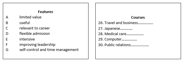 Choose FIVE answers from the box below and write correct letter A-G next to questions 26-30.
