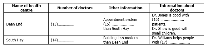 18. Doctors start seeing patients at the Health Centre from o’clock.